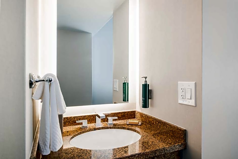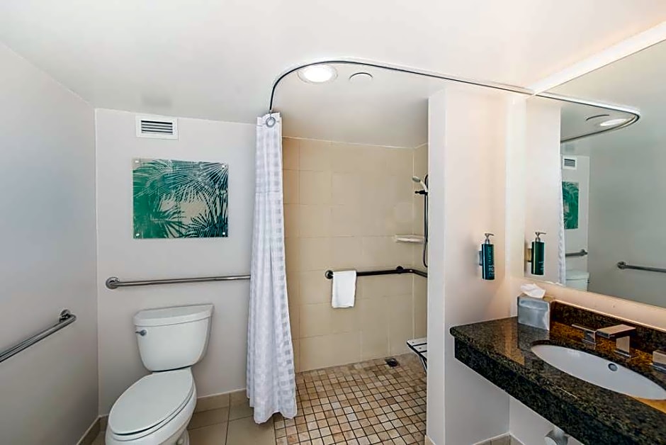 Enjoy the same attractive, spacious suite with all our coveted amenities plus features preferred by our special needs guests. This hearing accessible standard junior suite features one king-sized bed and has a minimum 40-inch clearance on all doorways and between furnishings, making chair maneuvering easy. Our vanities and closets are constructed to provide convenient access. This bathroom offers a roll-in shower. Weekday (Monday-Friday) delivery of newspaper. Any corresponding photo may not reflect the specific accessible room type or room feature.
