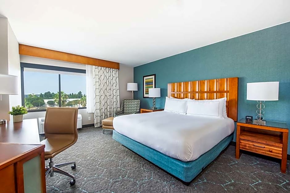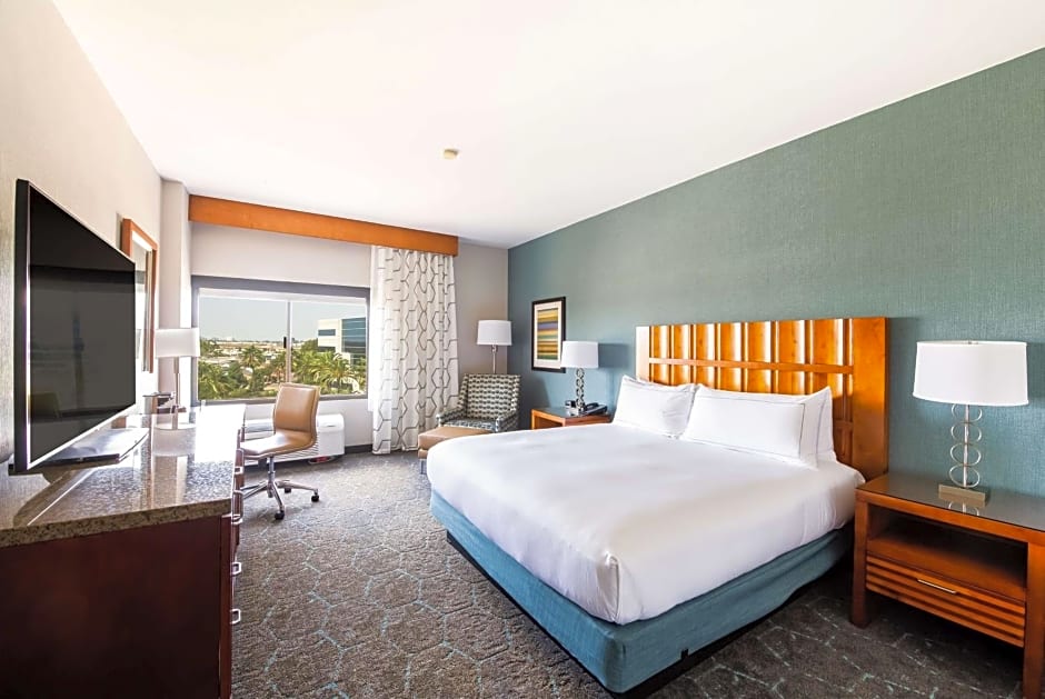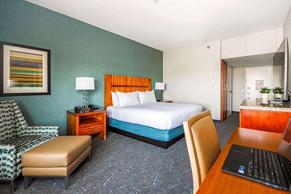 Enjoy the same attractive, spacious rooms with all our coveted amenities plus features preferred by our special needs guests. This mobility and hearing accessible standard room features one king-sized bed, has a minimum 40-inch clearance on all doorways and between furnishings, making chair maneuvering easy. Our vanities and closets are constructed to provide convenient access. Weekday (Monday-Friday) delivery of newspaper. Any corresponding photo may not reflect the specific accessible room type or room feature.
